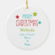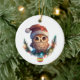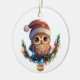 Na frente deste adorável ornamento cerâmico para uma criança é uma coruja adorável vestindo um chapéu de Papai Noel. Ele está empoleirado em uma tosse verde que brilha com as luzes de Natal, e uma lâmpada decorada pendura no meio. O verso do ornamento tem uma mensagem de Feliz Natal e sua assinatura. Perfeito para uma filha, filho, neta ou neto.