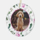 Este elegante ornamento fotográfico apresenta botânicos brancos bonitos e seu favorito animal de estimação, bebê, casal, família ou qualquer foto! Momento perfeito para adicionar o toque especial ao seu decoro de férias!