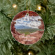 Ornamento com vista de Pikes Peak e parte das Montanhas Rochosas durante o pôr do sol através de um buraco no Gêmeos Siameses no Jardim dos Deuses em Primaveras do Colorado, Colorado, Estados Unidos. Pikes Peak é o pico de cúpula mais alto da cordilheira da Frente Sul das Montanhas Rochosas. Procurando mais produtos? Visite minha loja: http://www.zazzle.com/timelessmomentsphtgy A arte foi tirada por Jennifer White com Fotografia Moments Eterno. Todas as imagens são protegidas por direitos autorais.