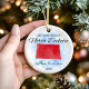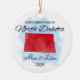 Um Ornamento Personalizado do Estado de Dakota do Norte usado para celebrar o primeiro Natal a viver juntos como casal, família ou recém-casados nos Estados Unidos da América. Celebre a sua primeira temporada de férias no estado de Dakota do Norte com o nosso adorável ornamento de "Estados Americanos". Essa manutenção personalizada é a adição perfeita à sua árvore de Natal, servindo como um lembrete eterno do seu primeiro Natal juntos — um momento que você vai apreciar por anos. Design personalizado: Adicione seus nomes e data para criar uma manutenção única que é exclusiva de vocês. Presente perfeito: uma escolha cuidadosa e apreciada para recém-casados e novos donos de casa. Uso versátil: mais do que apenas um ornamento em árvore! Mostre esta bela manutenção no seu ano de casa como um lembrete duradouro do seu ano especial. Nosso ornamento "Estados Americanos" é mais do que apenas uma decoração — é uma emocionante mania, simbolizando o início de sua jornada juntos. Cada ornamento é meticulosamente trabalhado para capturar a alegria e o amor de sua primeira temporada de festas em sua nova casa encontrada.