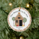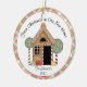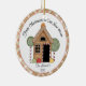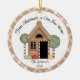 Comemore seu primeiro Natal em sua casa nova com o ornamento cerâmico que caracteriza um gingrbreadhouse com árvores do lollilipop e uma beira da xadrez do país. Personalize com seu nome e o ano.