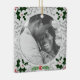 Natais vintages com padrão de cinza e folhagem clássica nos cantos. Coloque sua foto personalizada na frente e personalize o verso com seu nome e data em caracteres elegantes