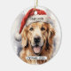 Um doce ouro Retriever com um boné Papai noel é o ornamento perfeito para personalizar para seu próprio ouro amigo com seu nome e ano de Natal