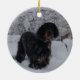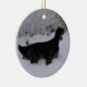 Setter de Gordon em um ornamento da tempestade de neve. Ornamento frente e verso que caracteriza um Gordon mais idoso em um lado e em um filhote de cachorro de Gordon no outro. Ambos os cães que estão na neve profunda quando a neve cair.