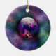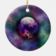 Padrões fractais vívidos e brilhantes circulam como uma tempestade elétrica de cor arco-íris com raios azuis, verdes, roxos, cor-de-rosa e laranja. Um ninho escuro, mas colorido, no meio.