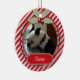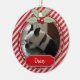 Candy Cane Stripe com Red and Green Holly Personalized Photo Pet Ornament - faz um presente de excelente para o cão ou o amante do gato. Personalize com sua própria foto e informações.