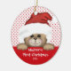 O Primeiro Ornamento de Natal do Bebê mostra um urso adorável vestindo um chapéu de Papai Noel em um fundo vermelho e branco pintado! Disponível em forma de coração no nosso compro! Personalize com sua informação e data do bebê e você está pronto para ir! Um maravilhoso presente de guardiã para o natal de 1rua do seu bebê.