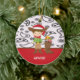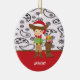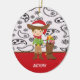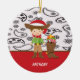 Esta é uma lembrança adorável. É um ornamento com um impressão ocidental branco na parte superior e a parte inferior é vermelha com uma tira marrom ao longo dela. No meio é um vaqueiro que veste botas de vaqueiro e uma camisa de xadrez verde. Tem um chapéu de vaqueiro marrom sobre com um chapéu do papai noel sobre aquele. Ao lado dele é uma bota de vaqueiro marrom enchida com os presentes. Verifique para fora as muitas outras cores e design que nós temos em nossa loja. ilustrações do ©JW