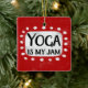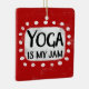 "Yoga Is My Jam" é um design de texto divertido com uma forma de sotaque branca cercado por pontos brancos texturizados.