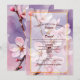 Elegante e suave, nosso convite de aquarela com flor de cerejeira causa uma bela primeira impressão. Delicadas flores de cerejeira cor-de-rosa, pintadas em um estilo sonhador de aquarela, florescem graciosamente contra um fundo suave de aquarela rosa-claro-lavanda. As cores suaves e mescladas criam um clima romântico e etéreo que é ao mesmo tempo atemporal e refinado. Uma caixa de sobreposição translúcida fornece um espaço contínuo para os detalhes do seu evento, permitindo que as flores sejam vistas lindamente. Perfeito para casamentos, festas de noivado, aniversários marcantes, chá de noiva ou qualquer ocasião especial, este convite se adapta facilmente à sua celebração. O verso continua o tema com o padrão completo de aquarela da flor de cerejeira, oferecendo um acabamento coeso e artístico de todos os ângulos.