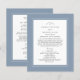 O design do programa de casamento com orçamento acessível Dusty Blue apresenta uma bela moldura sofisticada em azul poeirento que inclui uma elegante moldura branca delicada. Personalize os detalhes da cerimônia de casamento para seus convidados em letras de caligrafia cinza carvão sofisticada e conjunto de script em fundo branco. A parte de trás do cartão combina com o azul poeirento em branco crocante e é toda sobre sua equipe de casamento! Um modelo moderno para data e ano complementa o design de caligrafia único. [OBSERVAÇÃO: A exibição da data do casamento conforme mostrado usa a barra vertical ou linha que pode ser encontrada acima da \ em um teclado ou no seu dispositivo inteligente com caracteres especiais. Você também pode personalizar com qualquer outro caractere de sua escolha.] Para obter os melhores resultados, certifique-se de seguir as instruções e espaçamento no modelo ao adicionar seus próprios detalhes. Sinta-se à vontade para entrar em contato comigo em invitationsuites@gmail.com se tiver dúvidas sobre este ou qualquer outro de