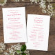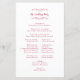 Elegante programa tradicional de cerimônia de núpcias apresenta uma design formal romântica. Duas decorações florescem cada uma contendo um coração solteiro rodeando lindamente os nomes dos casais na frente do programa e a legenda "A Festa de casamento" na parte traseira. Personalize todos os detalhes em delicadas letras e scripts vermelhos magenta. Para obter resultados ótimos, substitua os detalhes do modelo com seus próprios detalhes, deixando espaço entre os parágrafos como no exemplo e capitalizando onde especificado ou se a palavra for um nome adequado e normalmente capitalizado. Se você precisar de assistência com espaçamento para tornar seus detalhes perfeitamente ajustados, por favor, envie-me uma mensagem no link fornecido na lista ou envie um e-mail para invitationsuites@gmail.com. Normalmente respondo dentro de 24 horas ou menos. Solicitação de cor personalizada aceita.