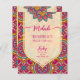 Cerise mandala rangoli mehndi convite orçamental. Cores vibrantes para se adequar às celebrações do pré-casamento.