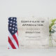 Certificado de Apreciação de Veterano