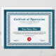 Certificado de apreciação imprimível. Layout de certificado fácil de personalizar para qualquer ocasião