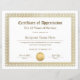 Certificado de Apreciação para Anos de Serviço