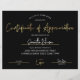 Prêmio de Apreciação Preto e Dourado Moderno com texto e espaço personalizáveis para seu logotipo, perfeito para os prêmios membros e funcionários pela sua contribuição e realizações em um determinado campo, carreira ou evento de arrecadação de fundos. Você pode usar este elegante certificado profissional preto e ouro de design de apreci para qualquer tipo de prêmio pessoal ou profissional.