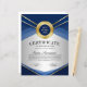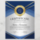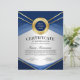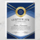 Modelo de folheto de certificado de apreciação vertical azul e dourado profissional com fundo gradiente cinza e medalha azul e dourada brilhante com um contorno de folha. Perfeito para escolas, empresas, igrejas e muito mais! Personalize o certificado ao seu gosto.
