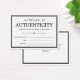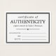 Certificado de autenticidade elegante e minimalista em preto e branco ao qual você pode adicionar seu nome ou nome comercial.