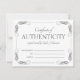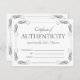 Cartão plano Elegante e de certificado de autenticidade de ornamentado em cinza escura e branco ao qual você pode adicionar seu nome ou nome comercial dentro a vintage frame.