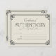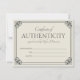 Certificado elegante de autenticidade de placa plana em cinza escura e casca de ovos, ao qual você pode adicionar seu nome ou nome comercial dentro de um ornamentado de quadro inspirado em vintage. Certificado de autenticidade sem cor branca com quadros e fontes elegantes.