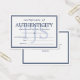 Certificado de autenticidade elegante e minimalista em azul e branco marinho ao qual você pode adicionar seu nome ou nome comercial. Personalize ainda mais com suas iniciais em azul pálido.