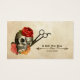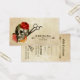 Um certificado de presente legal, vintage, grunge cartão de visita com crânio, flores rosa e tesouras/tesouras, de tom castanho/bege. Perfeito para cabeleireiros, cabeleireiros, cabeleireiros, cosmetólogos, cosmetologia, salão e muito mais!