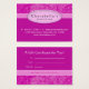Cartão-presente de salão/certificado (Cartão de visita) para unhas ou salões de cabelo ou Spa com bonito padrão floral/floral em damasco elegante e cor-de-rosa e estrias com bolha de nome oval da empresa.