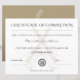 Certificado elegante de conclusão para realização de treinamento de músicos de guitarra. Texto e logotipo para personalizar. Cores principais: bege dourado e cinzas.
