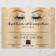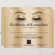 Moderno Dourado Lashes & Brows Certificado de Prêmios de Conclusão de Salão.