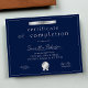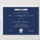 Certificado Profissional de Conclusão em azul-marinho e prata com seu logotipo personalizado ou nome da empresa, perfeito para certificado de conclusão para qualquer tipo de conclusão de curso, como cursos profissionais, credenciamento, prêmios educacionais e muito mais! Você pode editar todo o texto, adicionar seu logotipo e criar diplomas corporativos para sua empresa ou organização.
