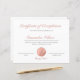 Um certificado de conclusão elegante e profissional. Este design apresenta a caligrafia de na moda clássico. Perfeito para academias de beleza, programas de treinamento em tecnologia de lash, escolas de cosmetologia, instrutores e muito mais. Fácil de personalizar o design. Observe que os detalhes do ouro rosa e brilho são simulados.