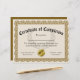 Certificado de conclusão de 8,5"x11" para funcionarios, estudantes, funcionários ou qualquer pessoa para qualquer curso, escola ou programa. Design personalizado em verde elegante e bronzeado com um selo de ouro falso. Mostre seu orgulho e entusiasmo sobre os esforços de seus alunos e funcionarios com este certificado personalizado e personalizado. Bonito fronteira de arte de corte de madeira com estilo clássico. Adicione seu próprio texto on-line e solicite certificados personalizados para sua cerimônia. Deixe o vazio da área de assinatura para adicionar uma assinatura mais tarde ou digite seu nome e título e ainda adicione sua assinatura acima. O nome da Honoré pode ser digitado ou a linha do vazio pode ser deixada para adicionar nomes escritos à mão ou impressos posteriormente.