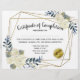 Carta floral Elegante Tamanho Carta de 8,5"x11" Certificado de conclusão para funcionarios prêmio, estudantes, funcionários ou qualquer pessoa para qualquer curso, escola ou programa. Excelente de salão, spa, massagista, beleza à base de plantas, consultor, maquiagem ou uso industrial feminino. Design personalizado em floral de aquarela com quadros brancos, azuis e dourados. Mostre seu orgulho e entusiasmo sobre os esforços de seus alunos e funcionarios com este certificado personalizado e personalizado. Adicione seu próprio texto on-line e solicite certificados personalizados para sua cerimônia. Deixe o vazio da área de assinatura para adicionar uma assinatura mais tarde ou digite seu nome e título e ainda adicione sua assinatura acima. O nome da Honoré pode ser digitado ou a linha do vazio pode ser deixada para adicionar nomes escritos à mão ou impressos posteriormente.