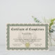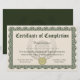 Certificado de conclusão de qualquer curso, escola ou programa. Design personalizado em verde elegante e bronzeado com um selo de ouro falso. Mostre seu orgulho e entusiasmo sobre os esforços de seus alunos e funcionarios com este certificado personalizado e personalizado. Adicione seu próprio texto on-line e solicite certificados personalizados para sua cerimônia. Bonito fronteira de arte de corte de madeira com estilo clássico.
