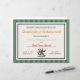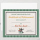 Este "Certificado de Conquista" é o presente e o souvenir definitivo para qualquer despedida de solteiro ou evento "Dia de Campo" do noivo. Com um design de certificado clássico com fundo listrado verde e uma ilustração divertida de um homem correndo com um troféu, este prêmio permite que você reconheça as conquistas dos participantes. Alguns reconhecimentos divertidos podem incluir “Campeão de Cornhole”, “Melhor Espírito de Equipe”, “Pior Coordenação” ou até mesmo “Mais Propenso a Sofrer Lesão Muscular”.