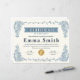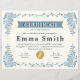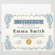 Um certificado de conquista refinado, apresentando uma borda floral azul elegante e um layout clássico. Perfeito para reconhecer conquistas, prêmios de funcionários, sucesso acadêmico, apreciação corporativa ou eventos formais. Este design atemporal oferece uma aparência profissional e sofisticada adequada para escolas, empresas e organizações.