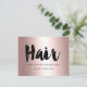 Um moderno, na moda, certificado de presente, cartão de visita de cabelo com estilo moderno de letras de mão, tipografia de pincel em folha de ouro falso rosa num fundo metálico elegante de folha de ouro rosa. Se precisar de alguma personalização, não hesite em me contactar