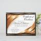 Desenho de fitas douradas e pretas, lindas e elegantes, perfeitas para premiar o destinatário por qualquer conquista. Tamanho Carta 8,5x11, personalize este certificado de excelência com a conquista personalizável, nome da escola ou oficial. Perfeito para recompensar uma conquista ou um trabalho bem feito em qualquer acampamento, curso, escola ou programa. Estilo clássico moderno e elegante personalizado. Premie jogadores, alunos, funcionários, treinadores, membros da equipe ou MVP com este certificado personalizável e personalizado. Adicione seu próprio texto online, sem quantidade mínima de pedido, certificados feitos sob medida para seu banquete ou cerimônia de premiação.