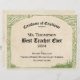 Certificado de Excelência para o Melhor Professor