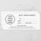 Um logotipo de negócios personalizado minimalista certificado de presente preto e branco para uma empresa profissional para usar como ferramenta de promocional para desenvolver a fidelidade do cliente. Adicione uma foto quadrada do seu logotipo. Você pode alterar a fonte, a cor da fonte, o tamanho da fonte, o espaçamento da letra, a cor do plano de fundo, a cor de preenchimento do fundo do retângulo branco e reposicionar o texto usando a Ferramenta Design. Você também pode excluir as informações que não deseja. O simples design elegante moderno é seu para personalizar como quiser.