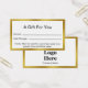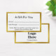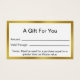 Este modelo de certificado de presente em ouro branco e falso tem texto de exibição que você pode editar para criar um certificado de presente comercial personalizado. Estes cartões brancos têm uma falsa borda dourada. (A fronteira não é feita de folha de alumínio.) Há linhas para você gravar o valor do certificado e a data em que ele é válido. O outro lado tem uma imagem de exibição que você pode substituir pelo seu logotipo e texto de exibição para o nome da sua empresa.