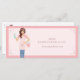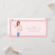 Certificado de presente para serviços de limpeza modernos e profissionais, que inclui uma mulher bonita, sorridente e amigável, com uma mão na anca, segurando um balde de água de sabão, e a outra mão segurando uma garrafa de spray de limpeza. A senhora está vestida com um avental listrado rosa e pincelado, uma camisa rosa pincelada e jeans de denim. O design inclui um quadro cor-de-rosa de duas tonalidades com sotaque cardíaco e detalhes cintilantes. Personalize com seu nome de empresa, site e monograma colocados no bolso da placa de estacionamento. O verso apresenta as informações do certificado de presente junto com informações de contato, identificadores sociais e ícones. Perfeito para oferecer serviços de limpeza aos seus clientes. Todas as ilustrações são obras de arte originais desenhadas à mão por Moodthology Papery.