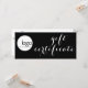 Modelo de certificado de presente de negócios branco e preto chic. Esta peça elegante tem uma fonte de estilo de script em branco a preto, que diz "Certificado de Presente". Há também espaço para o logotipo da empresa. Ao contrário, há texto personalizado editável em preto sobre um fundo de cor branca. O texto inclui os pormenores do certificado de oferta - a partir da data/validade do prazo de validade e o valor/montante, bem como os pormenores da empresa que emite o vale-presente - nome da empresa, endereço de rua, número de telefone e sítio web.
