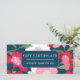 O certificado de presente da empresa floral moderna, bonito e colorido, inclui um padrão floral vermelho e branco rosa feminino ilustrado num fundo azul profundo. A parte traseira inclui um espaço editável para informações detalhadas sobre cor-de-rosa pincelado delicado.
