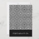 Apresentação do Certificado de Presente Preto e Branco com Nota de Serviço de Código QR profissional - uma placa de retrato simples de 5" x 7". O cobrir apresenta um padrão de azulejo aninhado na moda preto e branco que termina em uma caixa de texto preta na parte inferior. Em um roteiro elegante, o cartão proclama calorosamente, "Um Certificado De Presente Para Você. A parte de trás do cartão é elegantemente desenhada com texto preto sobre fundo branco para um aspecto polido e coeso. O layout está cuidadosamente organizado para facilitar o uso: Trimestre Superior: Esta seção inclui todos os detalhes essenciais como "Para", "De", "Valor", "Data de Expiração", "Emitido Por" e "ID do Certificado", com os termos do certificado-presente claramente apresentados em uma fonte menor para facilitar a legibilidade. Corpo: dividido por dois separadores, esta área pode ser deixada vazio para uma nota manuscrita ou personalizada com uma mensagem pessoal da sua empresa. Metade Inferior: A seção começa com o título "Serviços", que é exibido em duas colunas neat que listam a faixa de cheio de serviços fornecida pela sua empresa. Abaixo da lista de serviços, você encontrará ícones das mídias sociais e o identificador e a hashtag da sua empresa. O canto inferior esquerdo apresenta um código QR para programação sem esforço, coleta de informações, testemunhos e muito mais. Enquanto isso, o espaço certo apresenta o nome da sua empresa e as informações de contato, tanto físicas quanto virtuais. Este certificado de presente serve como uma ferramenta versátil de marketing e marca, perfeita para pequenas empresas de serviços como cabeleireiros, barbeiros, esteticistas, terapeutas, treinadores, etc. Você pode personalizá-lo facilmente atualizando o texto e os detalhes do código QR para corresponder perfeitamente à sua marca. Para obter mais inspiração sobre marcas e marketing de negócios off-line, visite www.KBMD3signs.com. Para obter assistência com personalização ou para obter informações sobre designs personalizados, entre em contato conosco em info@KBMD3signs.com.