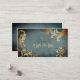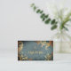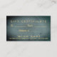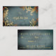 Um cartão de visita elegante, chique com folhas do ouro e um par de tesouras em um fundo do azul do grunge. Aperfeiçoe para hairstylists, cabeleireiros, hairstylists, armários do cabelo, cosmetologists, cosmetologia, salões de beleza, termas e mais! Excelente para certificados de presente do salão de beleza para o Natal