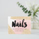 Um moderno e na moda, certificado de presente, cartão de visita de unhas de beleza com estilo moderno de letra manual, tipografia de pincel em uma moda e elegante brilho luxuoso de ouro, brilha pinceladas e pinceladas de pinceladas e cor-de-água rosa pastel. Se precisar de alguma personalização, não hesite em me contactar