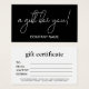 Belo script preto e branco Cartão de visita do Certificado de Presente