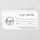 Certificado personalizado de presente comercial preto e branco com seu logotipo à esquerda e suas informações de contato abaixo do formulário de certificado de presente, em preto e branco. A parte de trás tem seu logotipo e slogan. Um design básico e simples que ainda aparece como profissional. Este simples e moderno certificado de presente corporativo é excelente para todos os tipos de negócios, grandes e pequenos. DESIGN DICA: Você pode alterar o texto e o plano de fundo para qualquer cor que desejar, clicando no botão "personalizar".